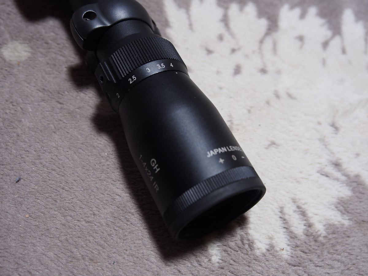 イルミネートレティクルは中央の点が赤/緑に光るタイプです。